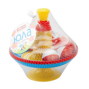 Юла прочно стоит на поверхности и «не убегает» от малыша, поэтому он может играть с ней даже в одиночестве.