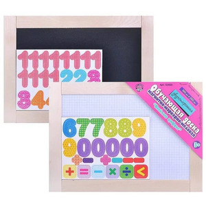 Основное отличие от остальных пяти досок серии - комплект магнитных цифр и знаков (45 штук), которыми очень удобно пользоваться на магнитной стороне данной доски. Это дополнительно расширяет игровые и обучающие возможности набора.Внешние габаритные размеры доски 36,5х26,5 см.
