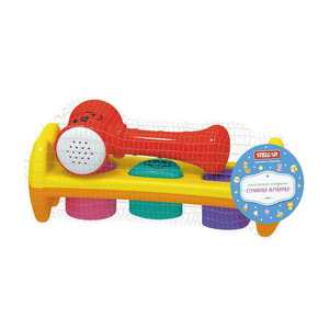 «Стучалочка-Обучалочка» - это яркая и интересная игрушка, которая с первого взгляда заинтересует вашего ребенка и будет особенно полезна для его полноценного развития. Благодаря ей кроха научится управлять своими движениями, а также познакомится с цветами, формами и фигурами. Задача малыша – логически подобрать разноцветные геометрические фигурки и с помощью молоточка забить их в отверстие нужной формы. После того, как ребенок справится с этой увлекательной задачей, «Стучалочку-обучалочку» можно перевернуть – и начинать любимую игру с самого начала.Особый восторг вызовет молоточек-кувалдочка, ведь при ударе по любой поверхности он издает забавные звуки, которые еще больше развеселят и заинтересуют малютку.