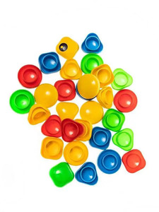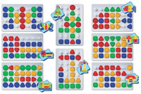 2. Выберите любую картинку на обороте коробки, подберите фишки по цвету и форме.