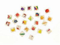 На игровом поле 228х152 мм ограниченного рамкой толщиной 4 мм размещаются фишки в 4 ряда, по 6 штук в ряд. Причем, каждый ряд нужно начинать с фишки, в соответствии с поставленной ребенку задачи. Например, сгруппировать фишки по виду плодов (овощи, фрукты, ягоды и грибы) или по цвету, по местам произрастания и т.п.