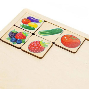 Собираем в рамке фишки с различными плодами. Можно группировать по цвету, вкусу, местам произрастания. И еще много групп – все зависит от вашей фантазии. Попутно развивается мелкая моторика рук, логическое мышление, зрительное восприятие, усидчивость.Игра развивающая из дерева «Овощи-Фрукты-Ягоды-Грибы» сделана по пазловому принципу.