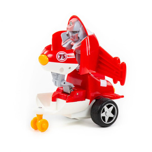 Самолет имеет инерционный механизм. Легко трансформируется в робота. Выполняет трюки.