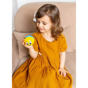 Суперпопулярный образ смайлика – теперь в виде музыкальной игрушки для детей! Жизнерадостный улыбающийся колобок развеселит любого малыша! Он задорно смеется, поет песенки («Я весёлый мячик», «Чижик-пыжик»), проигрывает мелодии с множеством смешных звуков («По секрету всему свету», «Полька» и др.). Катай мячик – он звучит при движении и светится разноцветными огоньками. Игрушка легко включается и выключается с помощью тумблера. Выбери свой цвет смайлика: красный, желтый, голубой или зеленый!