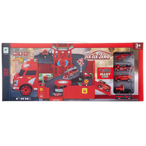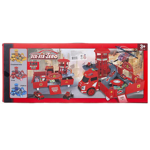 Машина-трансформер Junfa "Пожарная машина", 2в1, 1:64, не менее 42 деталей, с набором машинок, аксессуарами, в коробке