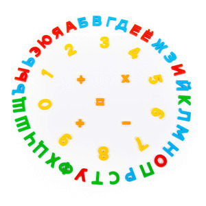 Буквы и Цифры Первые уроки на магнитах (33 буквы + 10 цифр + 5 математических знаков) (в пакете)