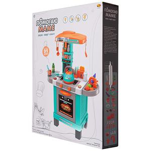 Этот игровой набор из серии "Помогаю Маме" представляет собой целый игровой комплекс, и отлично подходит для сюжетно-ролевых игр детей. Юный шеф-повар найдет все необходимое для приготовления любимых блюд. В комплект набора входят: духовой шкаф, плита с конфоркой с подсветкой, чайник из носика которого выходит холодный, безопасный «пар», капсульная кофемашина, тостер совмещенный с сушкой для посуды, раковина с краном, пластмассовая посуда, столовые приборы, муляжи продуктов.В комплекте не менее 30 игровых предметов.