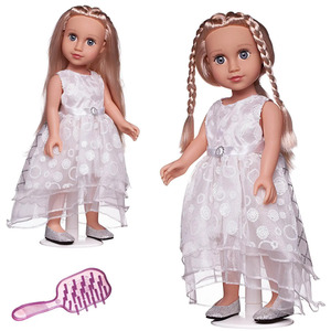 Очаровательная кукла "Baby Ardana" станет отличным подарком для любой девочки. Кукла имеет миловидную внешность, длинные, густые, светлые волосы. Она одета в роскошное, длинное, белое платье с воздушной многослойной юбкой. Линия талии оформлена атласной лентой с красивой пряжкой по центру. Играя с куклой, девочка будет придумывать различные сюжеты, развивать фантазию и чувство стиля.Высота куклы 45 см. Глаза не закрываются.