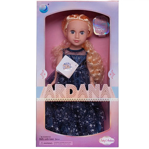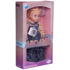 Очаровательная кукла "Baby Ardana" станет отличным подарком для любой девочки. Кукла имеет миловидную внешность, длинные, густые, светлые волосы. Она одета в роскошное, длинное, синее платье, усыпанное серебристыми звездочками. Играя с куклой, девочка будет придумывать различные сюжеты, развивать фантазию и чувство стиля.Высота куклы 45 см. Глаза не закрываются.