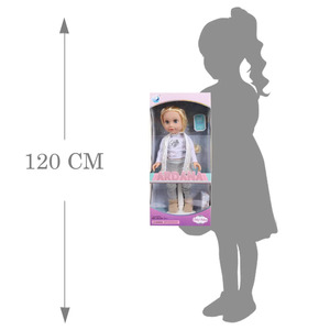 Очаровательная кукла "Baby Ardana" станет отличным подарком для любой девочки. Кукла имеет миловидную внешность, длинные, густые, светлые волосы. На ней одета стильная современная одежда: белая кофточка с аппликацией из серебряных пайеток в форме сердца, серебристые брюки, кремовая жилетка на молнии, зимние сапожки. Играя с куклой, девочка будет придумывать различные сюжеты, развивать фантазию и чувство стиля.Высота куклы 45 см. Глаза не закрываются.