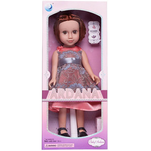 Эта очаровательная кукла "Baby Ardana" станет отличным подарком для любой девочки. Кукла имеет миловидную внешность, длинные, густые, каштановые волосы. Она одета в роскошное, длинное, нежно розовое платье, украшенное серебристыми кружевами и атласной лентой. Играя с куклой, девочка будет придумывать различные сюжеты, развивать фантазию и чувство стиля.Высота куклы 45 см. Глаза не закрываются.