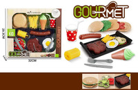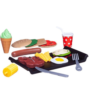 Этот набор «Сытный обед со стейком в компании друзей» из серии "Фаст Фуд Гурман" состоит из множества игрушечных блюд, которые очень похожи на угощения из ресторанов быстрого питания. Стейк, хот-дог, картошка фри, яичница-глазунья, многослойный бургер, кукуруза, мороженое, стаканчик с трубочкой выглядят весьма реалистично. Все основные блюда можно удобно расположить на специальном подносе. Бургер состоит из нескольких слоев, его можно разбирать и снова собирать. Каждый слой изображает отдельный продукт и при сборке ребенок может включать в его состав любимые продукты и исключать те, которые ему не по вкусу. Вареную кукурузу и мороженое так и хочется поскорее съесть. Такими продуктами всегда можно накормить игрушечных друзей.Комплектность: тарелка, стейк, картошка фри, яичница, овощи нарезка – 3 шт., бургер – 5 шт., сосиска, кукуруза, мороженное, стакан, вилка, нож.