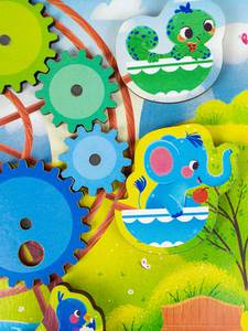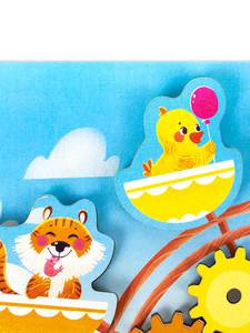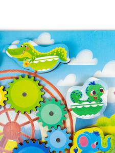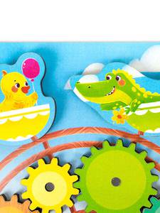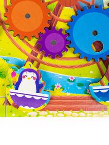 Комплектность: 17 элементов (1 доска, 8 шестеренок, 8 животных).Материал: дерево с элементами из бумаги, полимерные материалы.