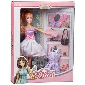 Кукла Atinil выглядит как красивая молодая девушка, которая разбирается в новинках моды и любит следить за собой. Ребенок, играя с такой куклой, сможет придумать множество различных сюжетов. Также в наборе имеются модные аксессуары. У куклы подвижны части тела, благодаря чему в процессе игры девочка сможет менять положение игрушки. А в ее гардеробной есть еще 2 красивых платья и многочисленные аксессуары.Материалы: полимерные материалы, текстиль.