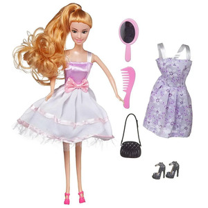 Кукла Junfa Atinil (Атинил) Гардероб модницы Летнее настроение (в коротком платье с сиреневым верхом) в наборе с доп.платьем и аксессуарами 28см