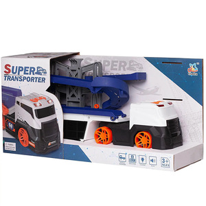Уникальный многофункциональный игровой набор «Автовоз-трек-парковка, 3в1» от бренда Junfa -отличный подарок для любого мальчика. В его составе большой яркий ультрасовременный автовоз с поворотной кабиной и отсеком для хранения маленьких машинок с откидной дверцей. Он легко трансформируется в трек с двумя спусками. Достаточно потянуть вверх центральную деталь, как оба спуска опустятся и трассы будут готовы. В верхней части треков установлены шлагбаумы, которые будут удерживать маленькую машинку до момента старта. Как только она будет готова отправиться в путь, шлагбаум нужно поднять вверх и наблюдать за скоростным спуском машинки. Внушительные размеры автовоза, скоростные треки, световая подсветка фар и звуковые эффекты сделают игру ребенка интересной и увлекательной. Играя, он будет развивать конструкторские навыки, логическое мышление, мелкую моторику рук, внимание и координацию движений.Комплектность: Автовоз-трек-парковка – 1 шт., маленькие машинки – 2 шт., комплект наклеек.