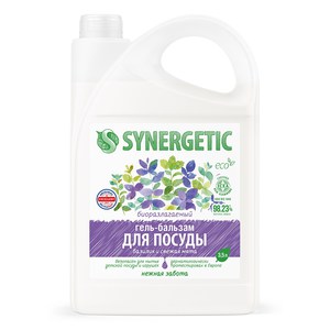 SYNERGETIC Гель-бальзам для мытья посуды Базилик и свежая мята, биоразлагаемый 3,5л