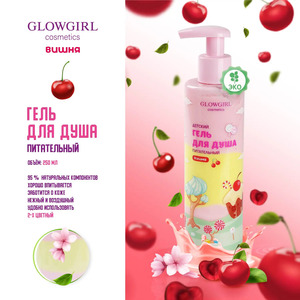 Glowgirl cosmetics Гель для душа питательный двухцветный Розовая Вишня / Pink Cherry Shower gel, 250мл. ЭКО продукт.