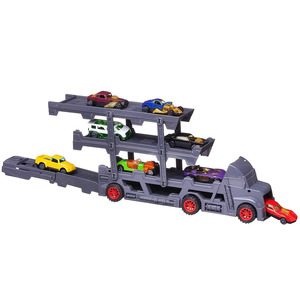 Игры с машинками не только любимое занятие для всех мальчишек, но и важный элемент их взросления. Оригинальный игровой набор от бренда Junfa состоит из вместительного Автовоза-трейлера, который перевозит машинки и фигурки динозавров на трех разноуровневых платформах. Благодаря удобному складному механизму ребенку будет удобно размещать, перевозить, а потом снимать машинки и фигурки с уровней. В задней части трейлера размещена раскладная платформа, которая трансформируется в дополнительный участок трассы со встроенной катапультой. Для запуска машинки установите ее в задней части этой платформы, зафиксируйте до упора, оттянув назад, нажмите на кнопку и наблюдайте как она проедет через весь трейлер и выедет из его кабины. Маленькие машинки, входящие в состав этого набора, имеют оригинальный дизайн, в их корпус интегрированы прозрачные детали, которые делают их уникальными, необычными. Кузов у машинок изготовлен из металла, остальные детали - из пластмассы. Дополняют набор игровое поле с петляющей трассой, на котором ребенок расставит дорожные знаки и будет играть с маленькими машинками. Многоуровневый автовоз-трейлер, дополняющие его многочисленные игровые предметы позволят ребенку придумать множество увлекательных сюжетов и сделают игру с игровым набором интересной и увлекательной.Размер автовоза-трейлера: 29 х 7 х 10.3 см.
