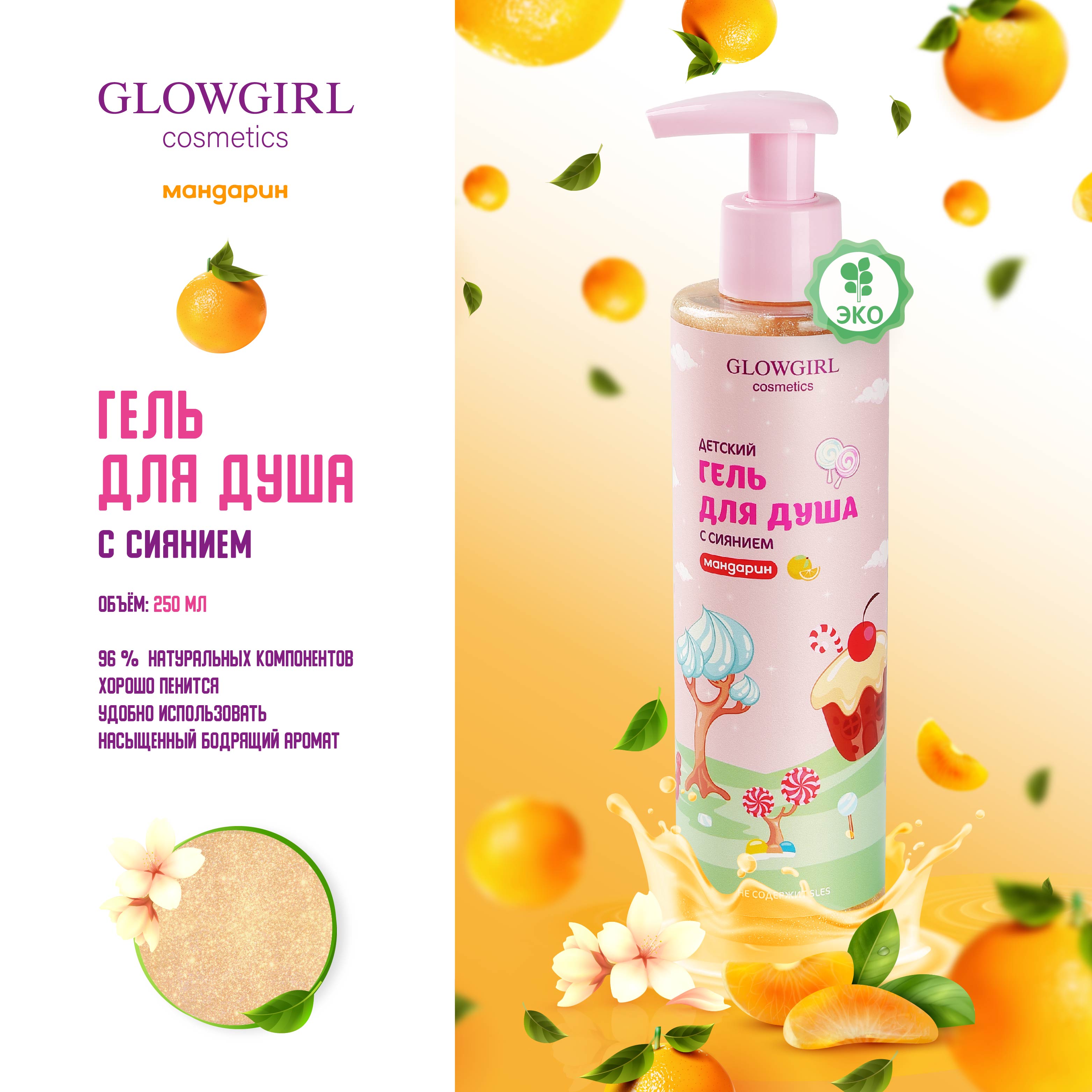 GLG1006 Glowgirl. Гель для душа увлажняющий золотое сияние детский Мандарин, 250мл. Эко продукт.Завораживающая золотая материя и искрящийся аромат сочного мандарина. Это удивительное сочетание подарит заряд бодрости и превратит купание в настоящее летнее приключение.