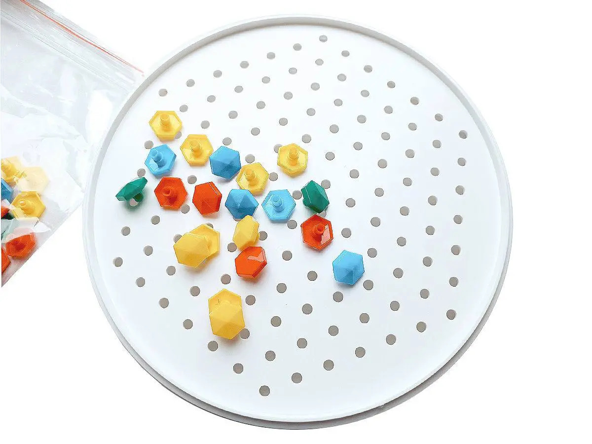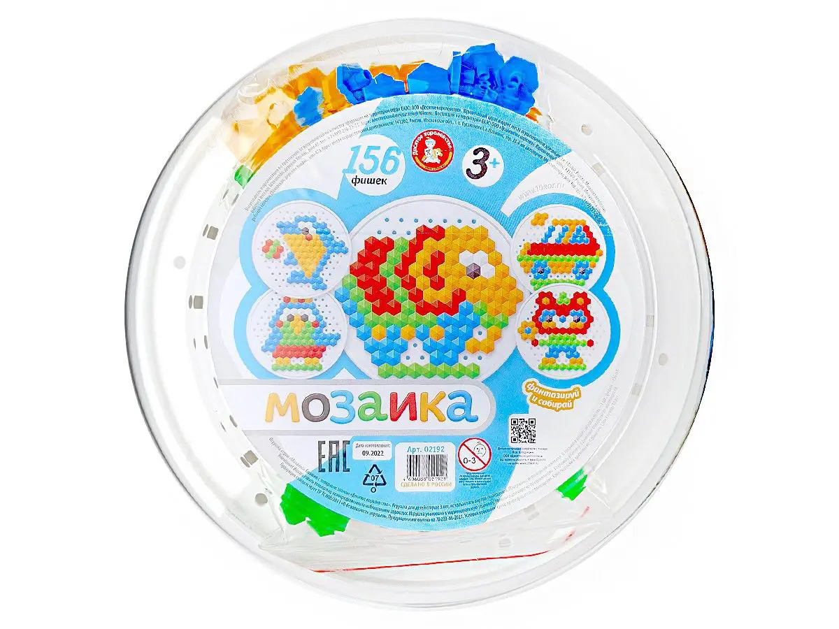 Мозаика круглая "Слоник" 156 эл. Состав игры: 156 элементов, 6 цветов (красный, желтый, зеленый, голубой, белый, черный); игровое поле круглое, диаметром 19,5 см; размер шестигранной мозаики 14 мм; Материал: полимерный материал. Рекомендуется для детей от 3 лет.