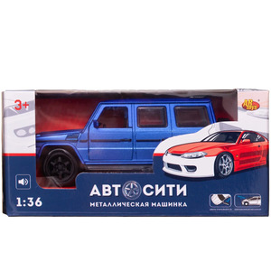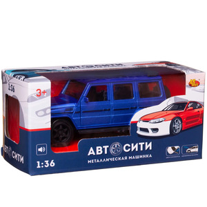 Машинка металлическая Abtoys АвтоСити 1:36 Внедорожник классический инерционный с открывающими передними дверцами синий свет звук