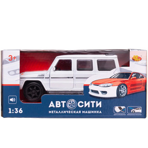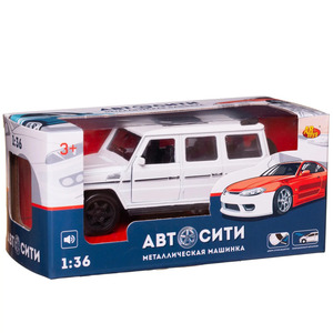 Машинка металлическая Abtoys АвтоСити 1:36 Внедорожник классический инерционный с открывающими передними дверцами белый свет звук