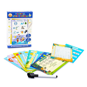 Игра развивающая Пиши-Стирай "Ребусы, кроссворды". Состав: многоразовые двусторонние карточки (71 задание) – 36 шт. (15,5 х 9,8 см), маркер на водной основе со стирающей губкой – 1 шт. Игра предназначена для детей от 5 лет. Материал: ламинированный картон. Игра тренирует внимание, воображение, память и логическое мышление.