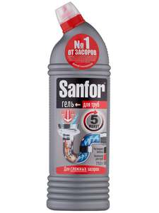 Средство для очистки канализационных труб "Sanfor" быстро устранит даже очень сильные засоры в канализационных стоках. Результат достигается уже за 5 минут. Благодаря густой структуре проникает глубоко в трубу непосредственно к засору, даже при наличии воды. Эффективно растворяет в стоках волосы, остатки пищи, жир и другие загрязнения. Нейтрализует неприятные запахи. Средство безопасно для всех видов труб, в том числе и пластиковых. Убивает микробы за 60 минут.