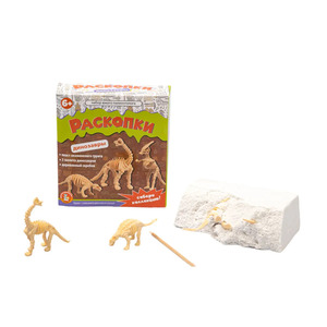 Раскопки "Набор юного палеонтолога" (3 динозавра)Состав игры: пласт грунта (гипс); деревянный стек – 1 шт;
