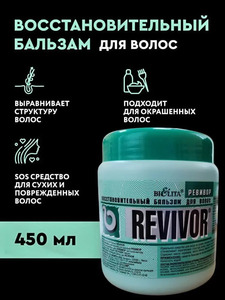 Восстановительный бальзам для волос REVIVOR уникальное средство оздоровительно-профилактического действия для интенсивного ухода за слабыми, сухими, ломкими, поврежденными волосами. Бальзам содержит ценное для глубокого восстановления волос норковое масло, которое способно оживить волосы, придать им красивый блеск и шелковистость. Кроме того, в состав бальзама входят масло кокоса, ланолин, гидролизованный коллаген, алоэ, крапива, которые мгновенно восстанавливают кератиновую структуру волос, придают им эластичность и упругостьРазмеры(швг): 90х110х90 мм.Страна: БЕЛАРУСЬ
