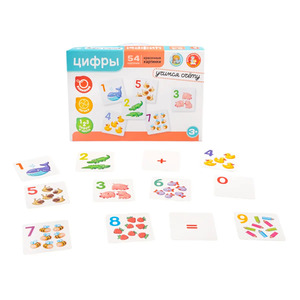 Цифры. "Учимся счету". Состав: карточки с картинками из картона - 54 шт. (4,5 х 4,5 см) Для детей старше 3 лет.