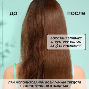 Вымойте волосы шампунем, воспользуйтесь кондиционером, для более насыщенного ухода 1-2 раза в неделю используйте маску, перед укладкой нанесите спрей-реконструктор. Использование всех средств серии – это ваша трехуровневая защита от жесткой воды: шампунь предотвращает неблагоприятное воздействие во время мытья, маска и кондиционер создают невидимый защитный слой на поверхности волос, сыворотка-реконструктор компенсирует накопленные повреждения, восстанавливая структуру волос и защищая от термовоздействия.