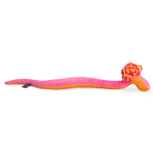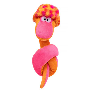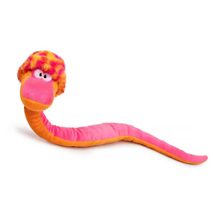 Неоново-яркая Линни сшита из ярко-розового и оранжевого софта. На голове у змейки забавная меховая шапочка, которая подчеркивает ее непоседливый характер.