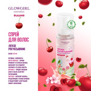 Glowgirl cosmetic. Спрей для волос Легкое расчесывание аромат Розовая Вишня / Pink Cherry Easy Combing Spray, 125мл. ЭКО продукт.