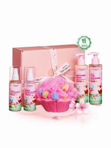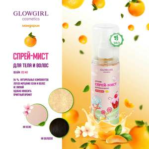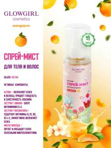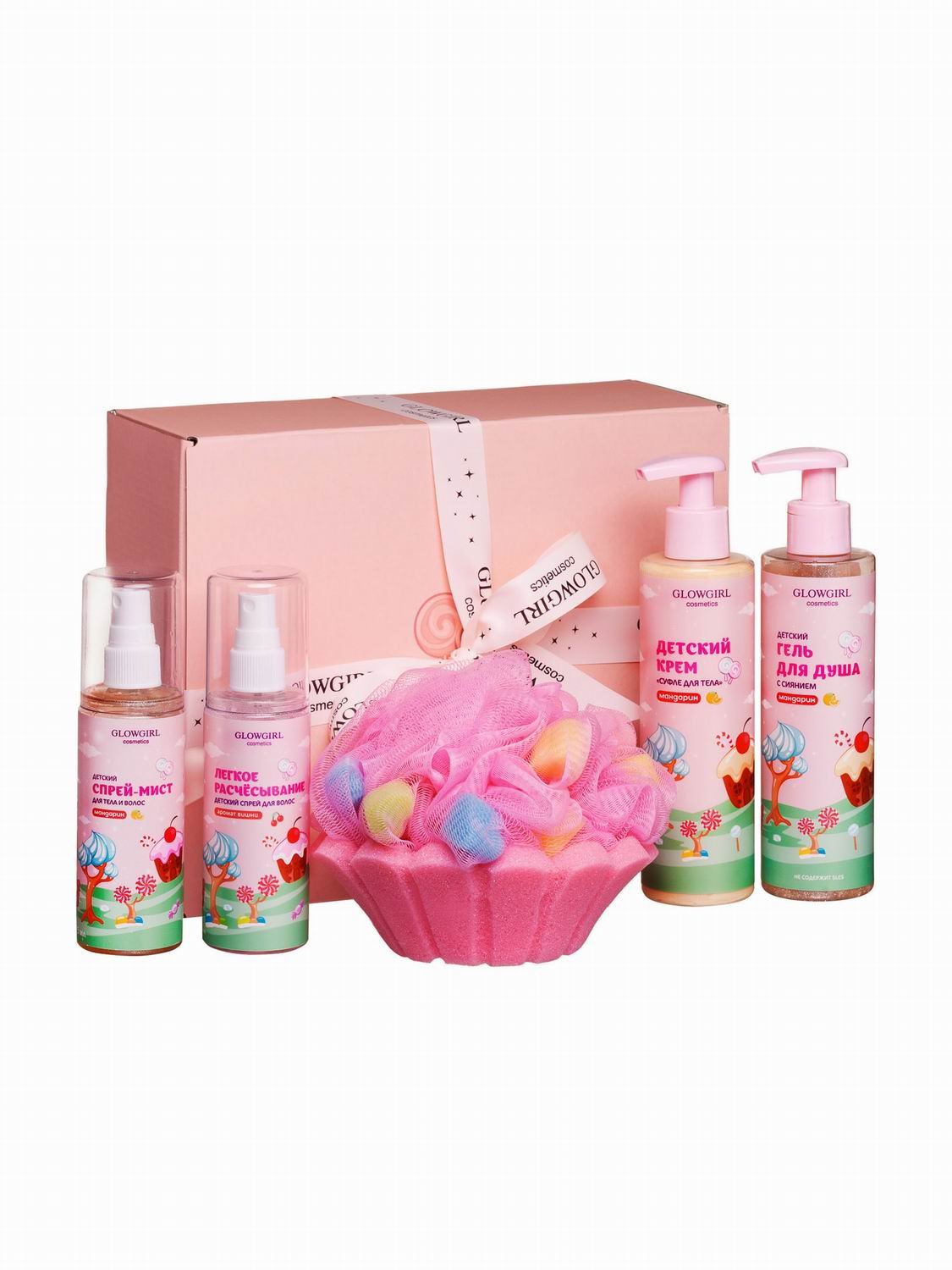 Glowgirl. Подарочный набор детской косметики по уходу за телом В ожидании праздника (5 предметов). ЭКО продукт.Glowgirl cosmetics. Мист с шиммером увлажняющий для тела и волос Сияющий цитрус / Cristal Citrus, 125мл. ЭКО продукт.