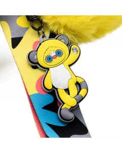 Стильная сумка в виде мордочки Лори Эйки из силикона тепло-желтого и лимонного цвета, с серыми ушками, яркими глазками и розовым носиком. Сумка на дизайнерском широком ремне и с модным подвесом — желтым меховым помпоном и брелоком Лори Эйка из силикона.