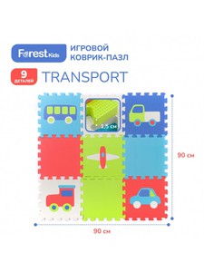 Forest kids. Игровой коврик пазл Transport 9 деталей 30х30х1,5 см