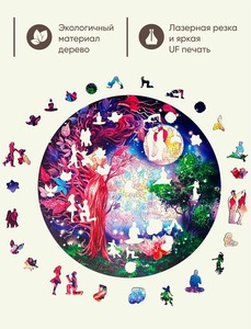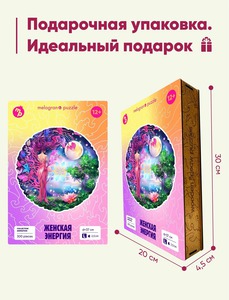 Деревянный пазл Melograno "Женская энергия" – гармония в каждом изгибе.317 деталей из натурального дерева сплетаются в утонченный круглый пазл (D 38 см), воплощающий грацию и силу женского начала.