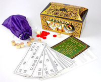 Русское лото в ларце выпускается нами больше 12 . Мы начали выпуск настольных игр с бочонками с «бюджетных» вариантов, удовворяя спрос тех наших покупателей, которые берут игры для себя.А вот этот ларец мы выпустили позже и сделали его для тех, кто покупает «Русское лото» в подарок. Эта настольная игра переместилась в симпатичный ларец, все комплектующие стали «солиднее», мешок стал большим и плотным, карточки по белее и поплотнее и бочонки стали проходить дополнительный контроль.